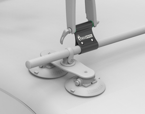 Der Dachträger wurde vom TÜV geprüft. Die Befestigung am Glasdach wird durch sehr Leistungsfähige Hochleistungssaugnäpfe sichergestellt.